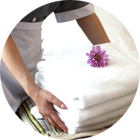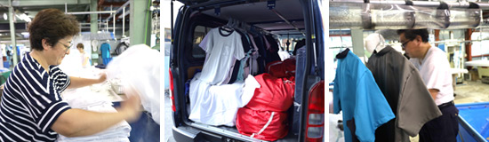 ホテルが規定した制服など大量な洗濯物を短期間できれいにいたします。
