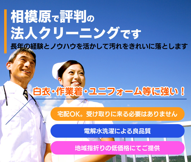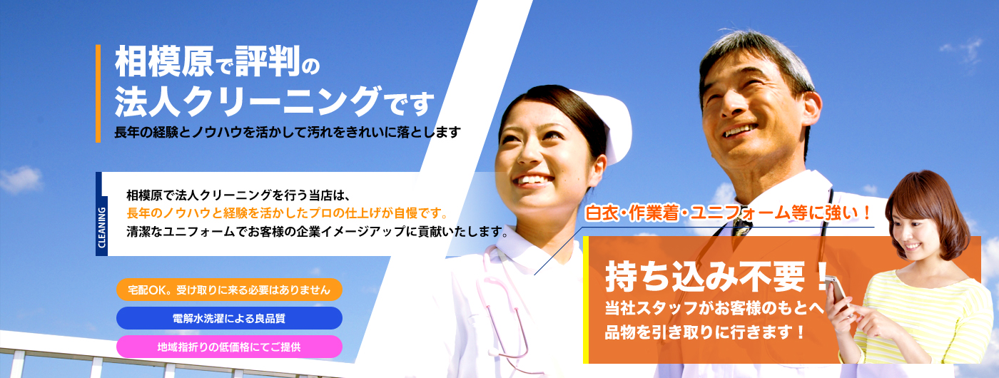 相模原で評判のクリーニングを行う、当店は法人のお客様向けサービスとなります。